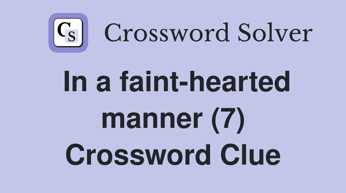 In a faint hearted manner (7) Crossword Clue Answers Crossword Solver
