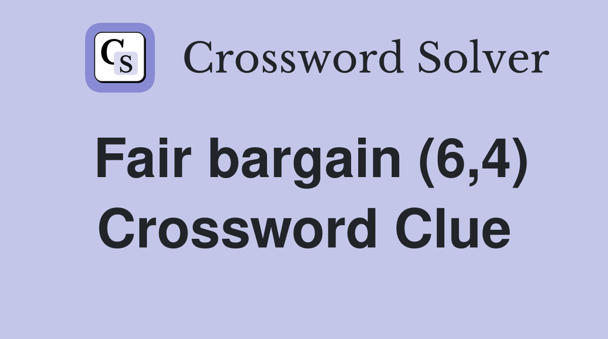 Fair bargain (6 4) Crossword Clue Answers Crossword Solver