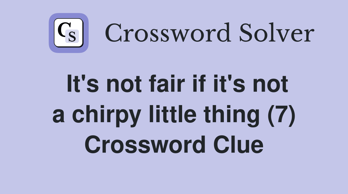 It #39 s not fair if it #39 s not a chirpy little thing (7) Crossword Clue