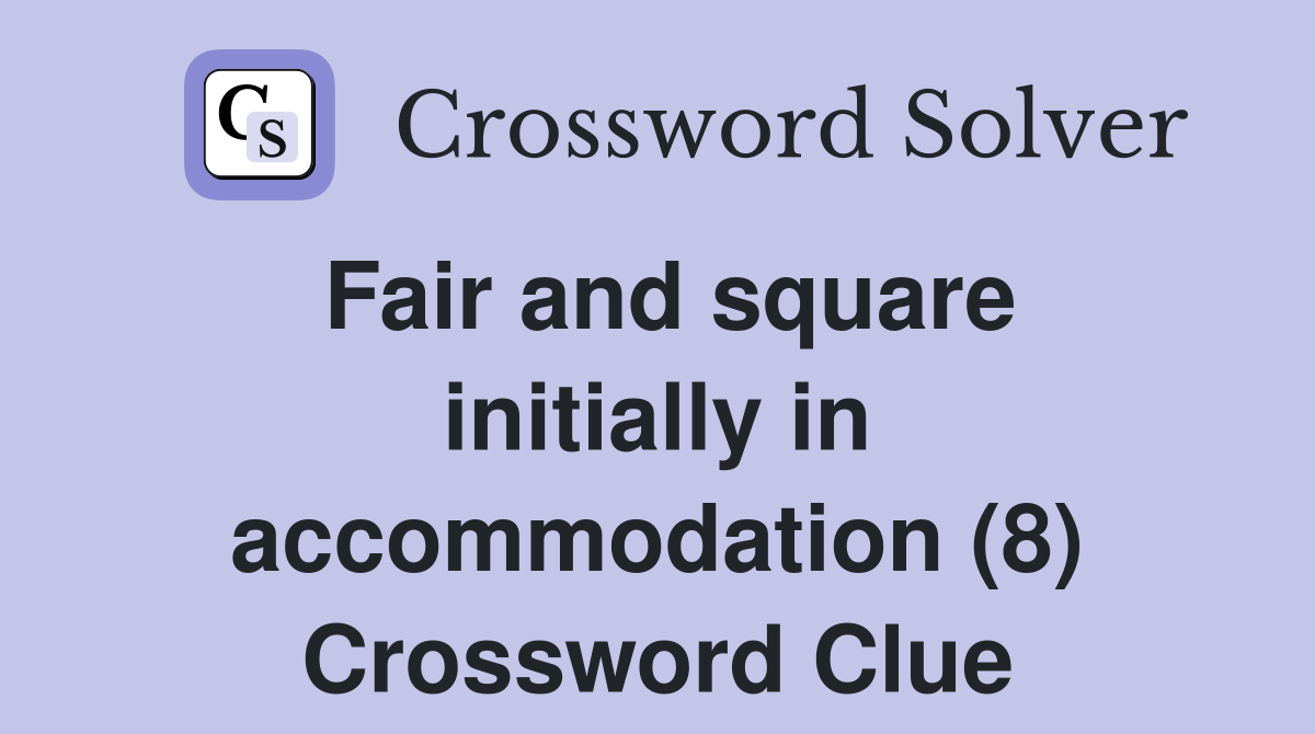 Fair and square initially in accommodation (8) Crossword Clue Answers
