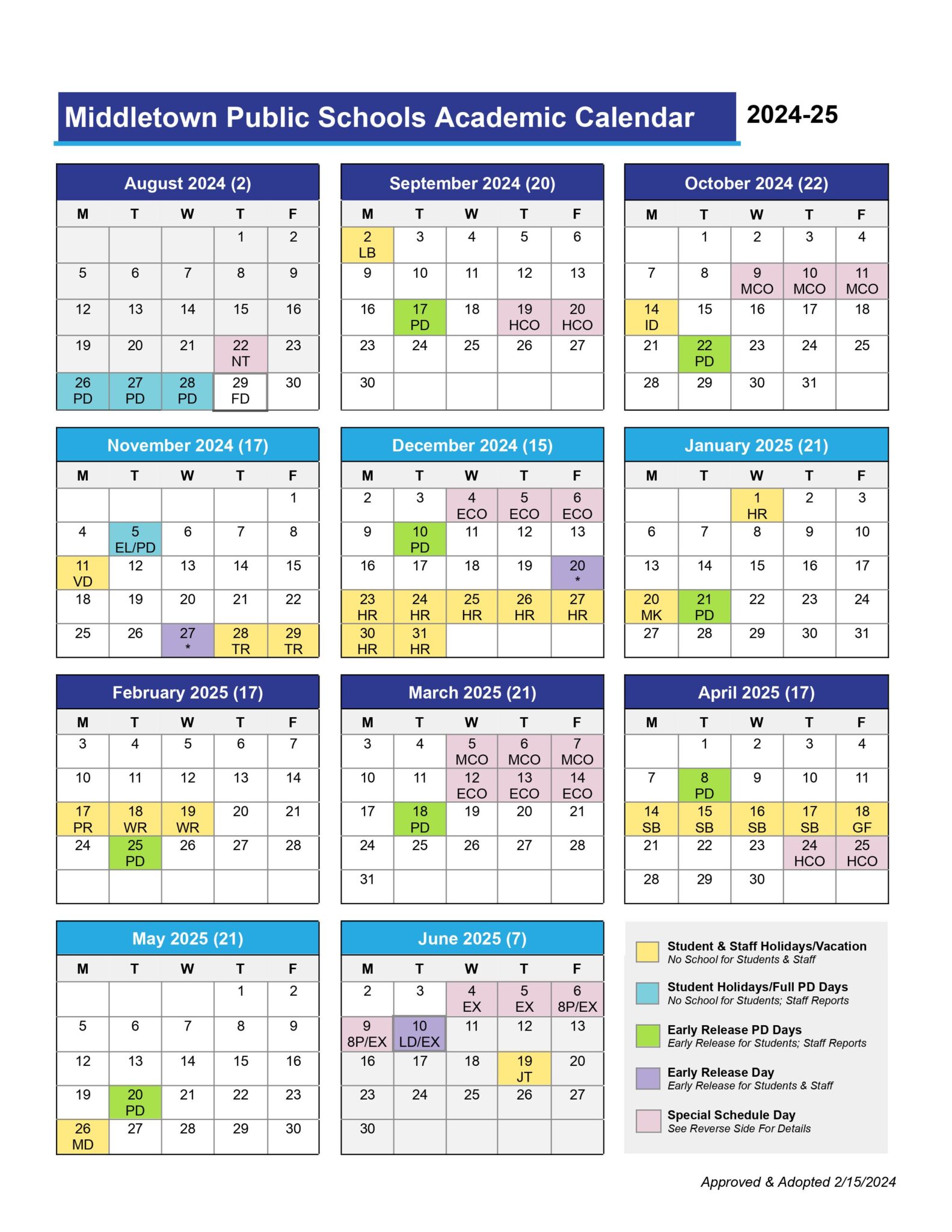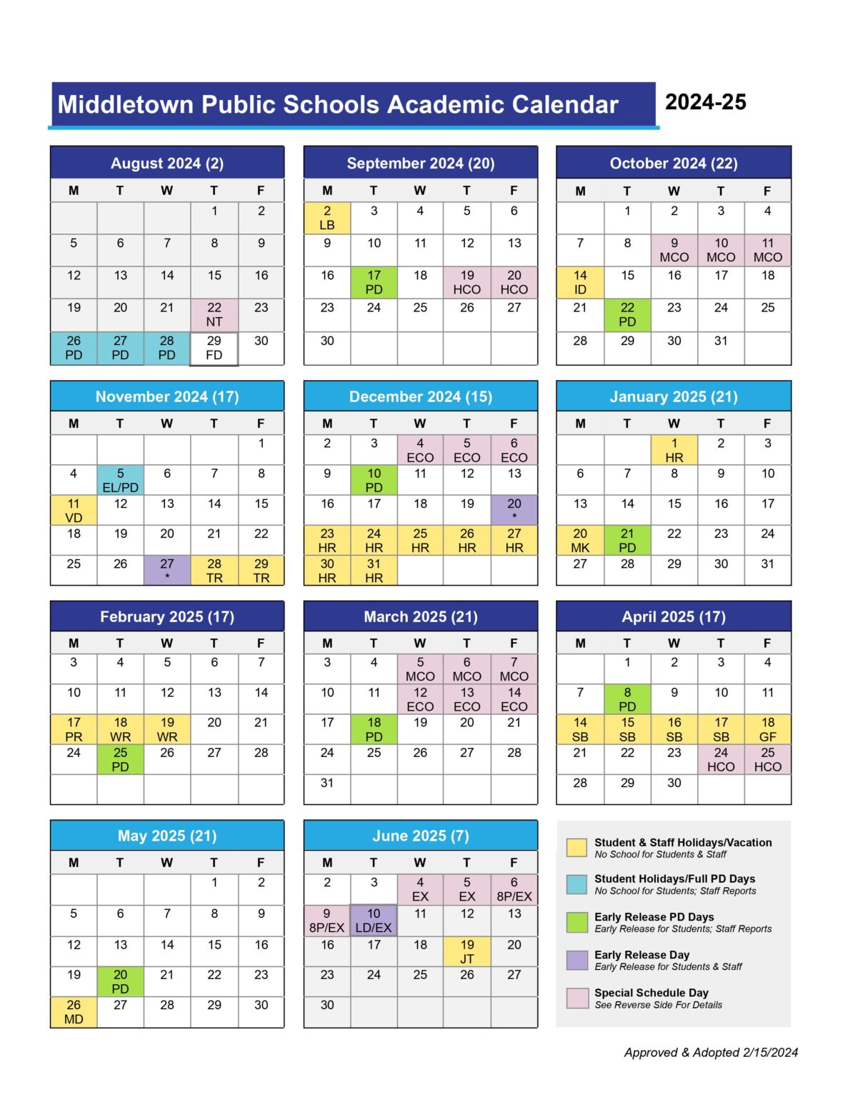 Middletown Public schools Calender 24 25 PDF EduCounty