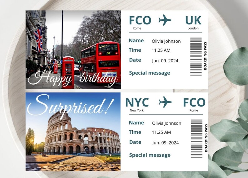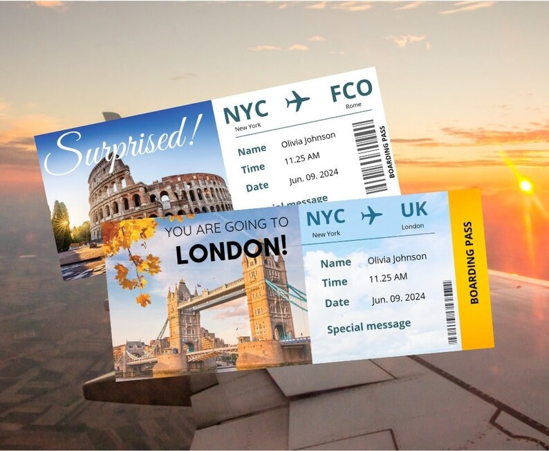 Text Editable Instant Download Surprise Trip Plane Ticket Gift Airplane