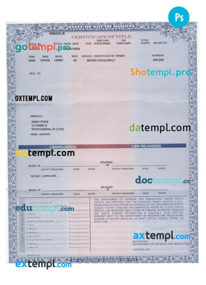 fake Oregon certificate of title of a vehicle (car title) download PSD