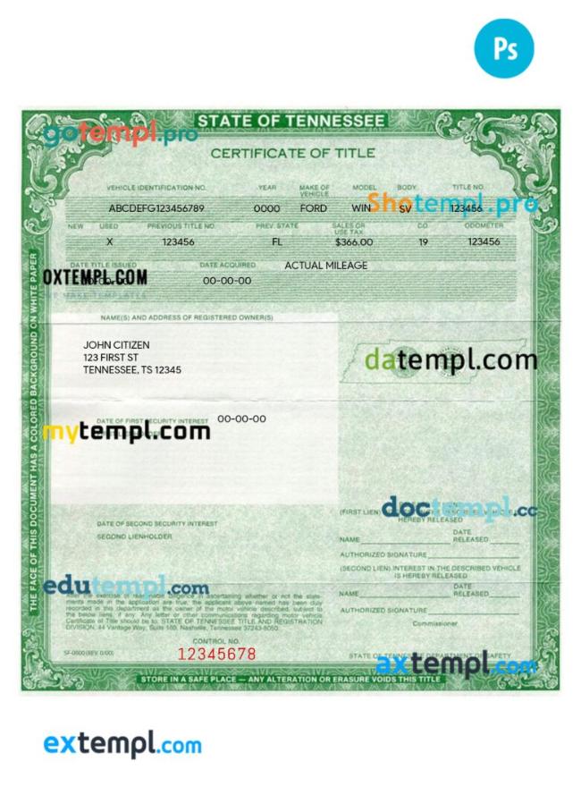 fake Indiana certificate of title of a vehicle (car title) download PSD