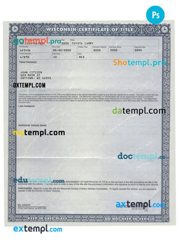fake Wisconsin certificate of title of a vehicle (car title) download