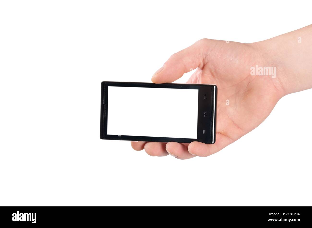 Hand holding smartphone color Cut Out Stock Images Pictures Alamy