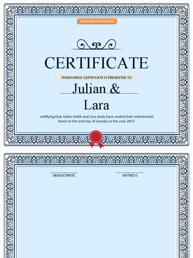 Free Fake Divorce Certificate Templates Free Printables Hub