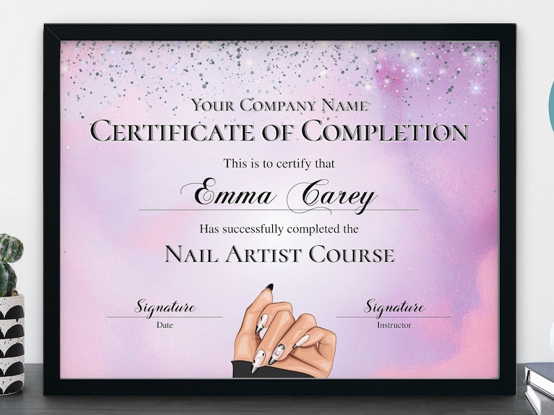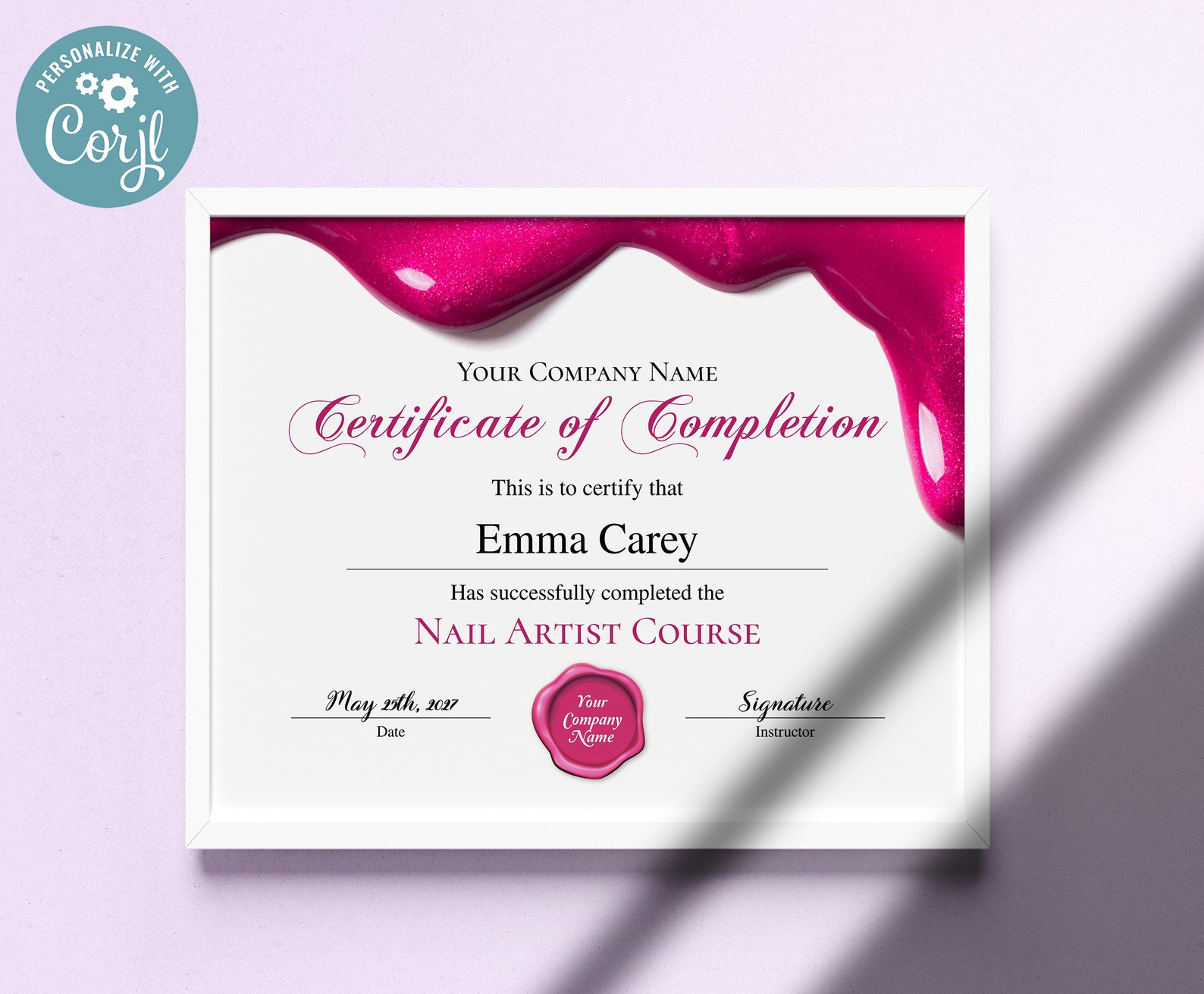 Nail Technician Certificate Course Completion EDITABLE Nail