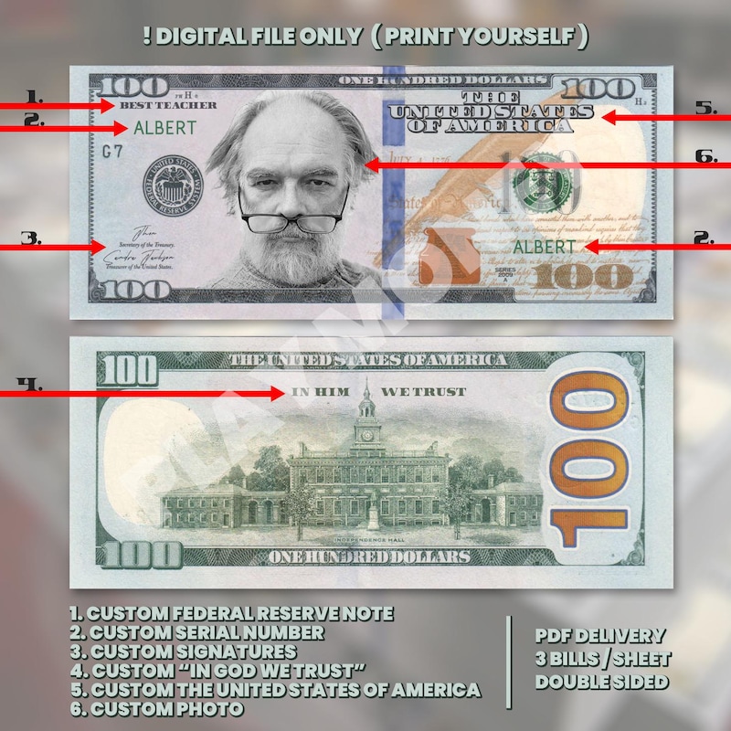 Download 100 Bill Fake Money Main Image Printable Play Money Black