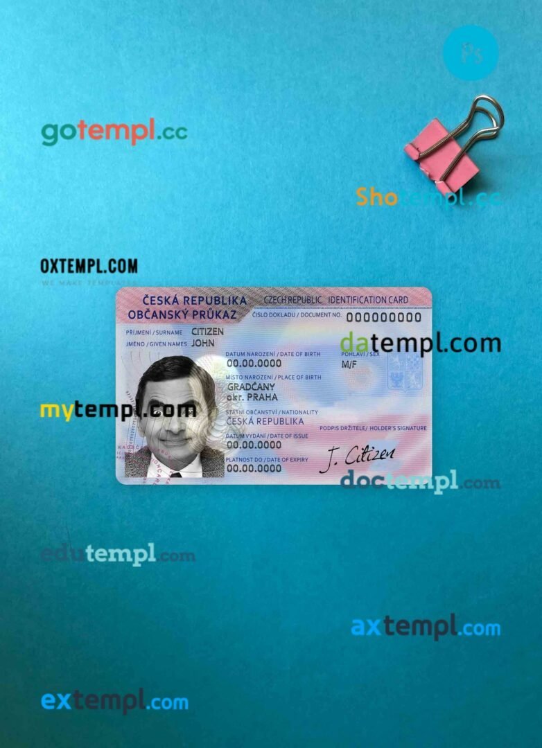 fake Czechia ID card download photolook and scan look PSD templates 2