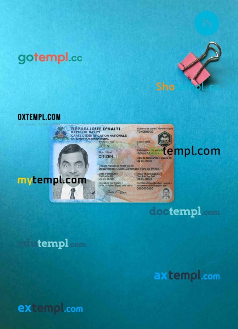 fake Haiti ID card download photolook and scan look PSD templates 2