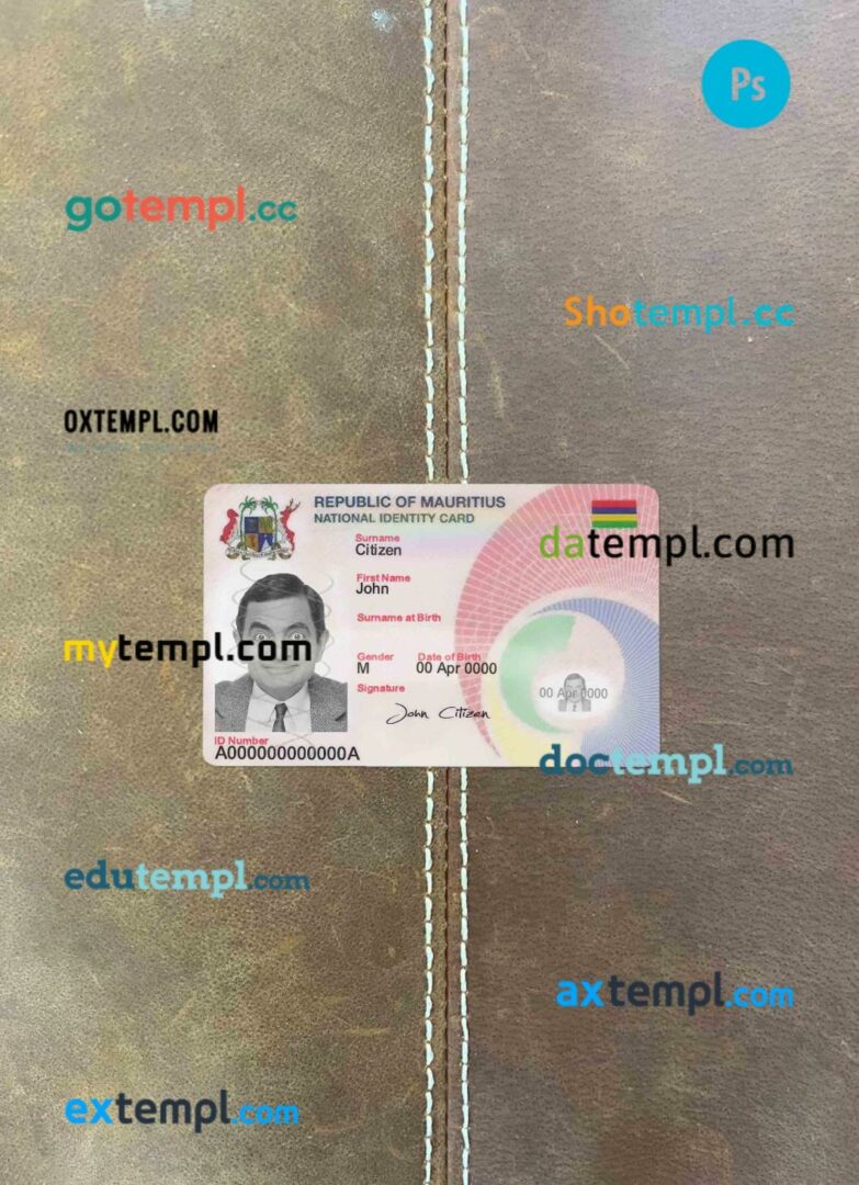 fake Mauritius ID card download photolook and scan look PSD templates