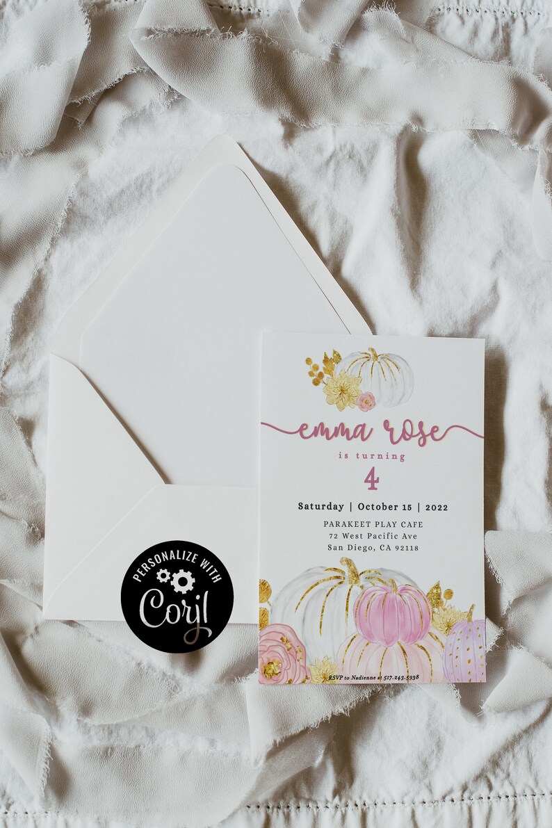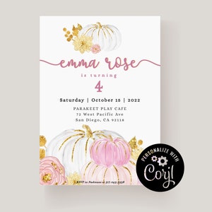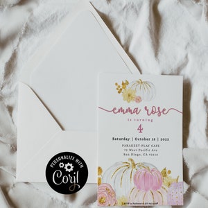 Editable Pumpkin 1st Birthday Invitation Fall Birthday Invitation