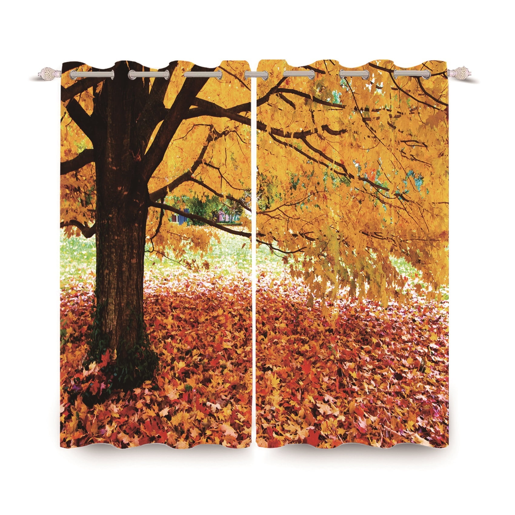2pcs/set Autumn Maple Forest Window Curtain Fall Yellow Tree Leaves
