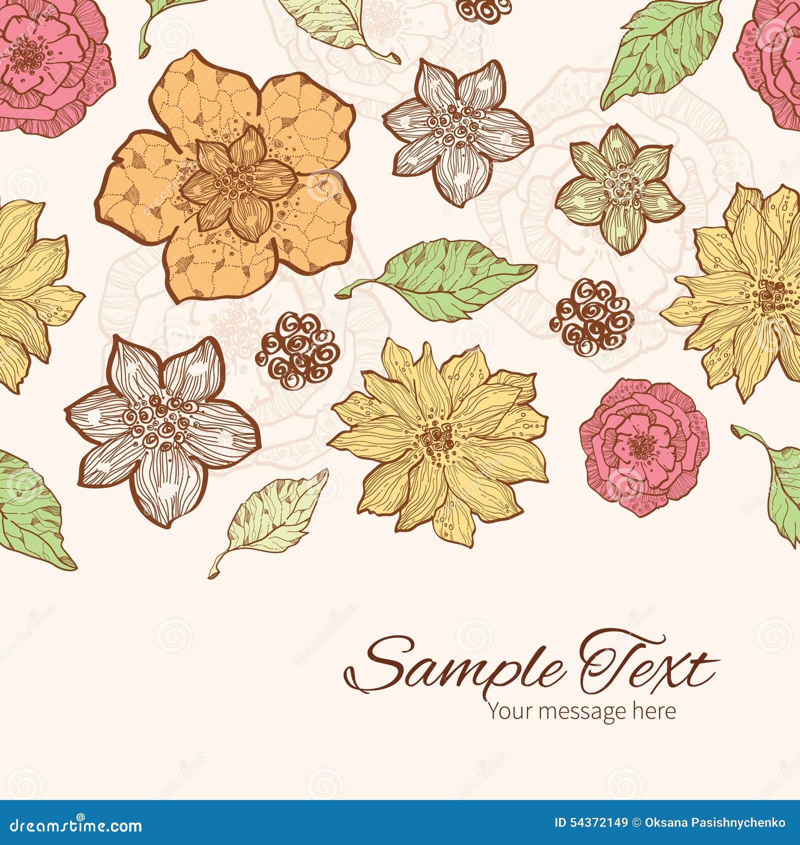 Floral border frame card template multicolor flowers leaves for
