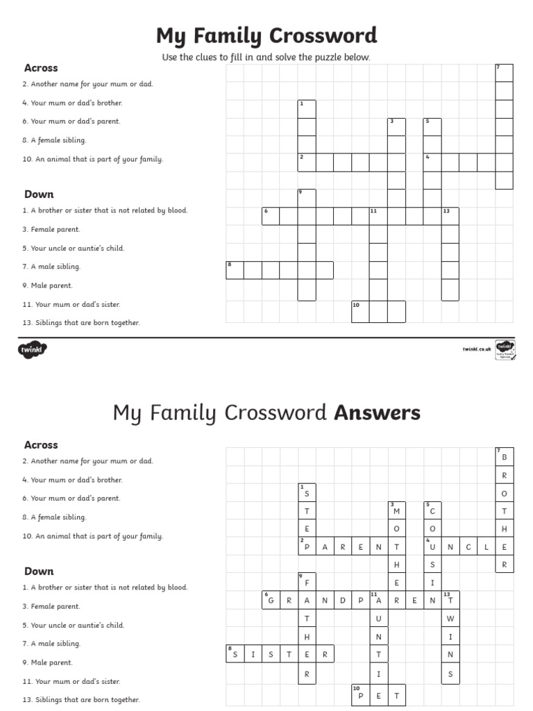 T T 253019 My Family Crossword PDF Crossword Word Puzzles