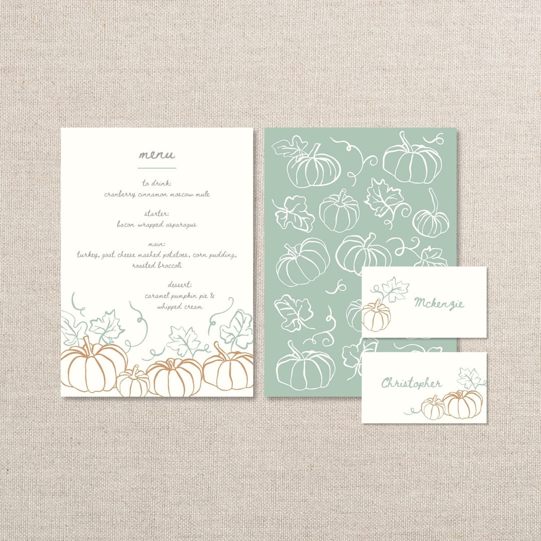 Pumpkin Fall Menu Template Dinner Party Menu Hand drawn Etsy