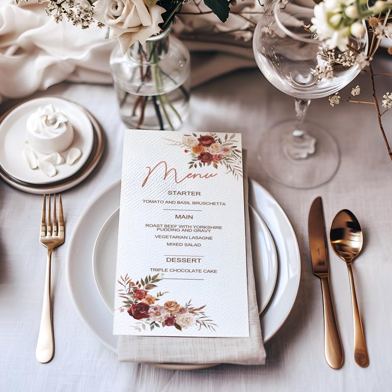 Fall Menu Template Printable Wedding Menu Thanksgiving Menu Etsy