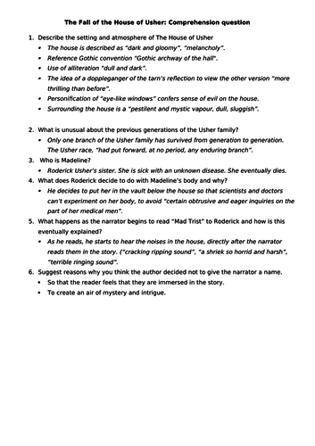 Edgar Allan Poe: The Fall of the House of Usher Questions by Electric