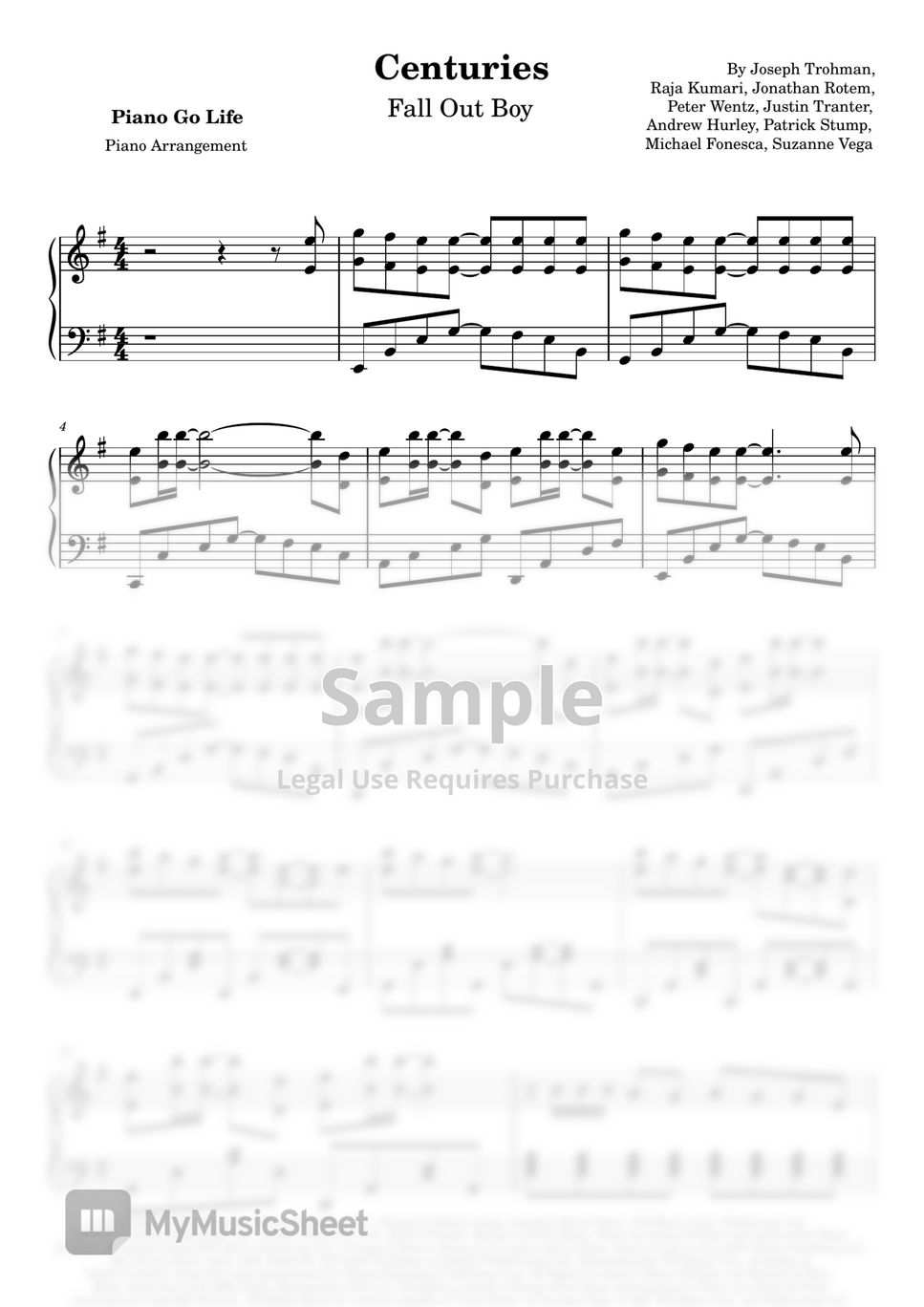 Fall Out Boy Centuries 악보 by Piano Go Life
