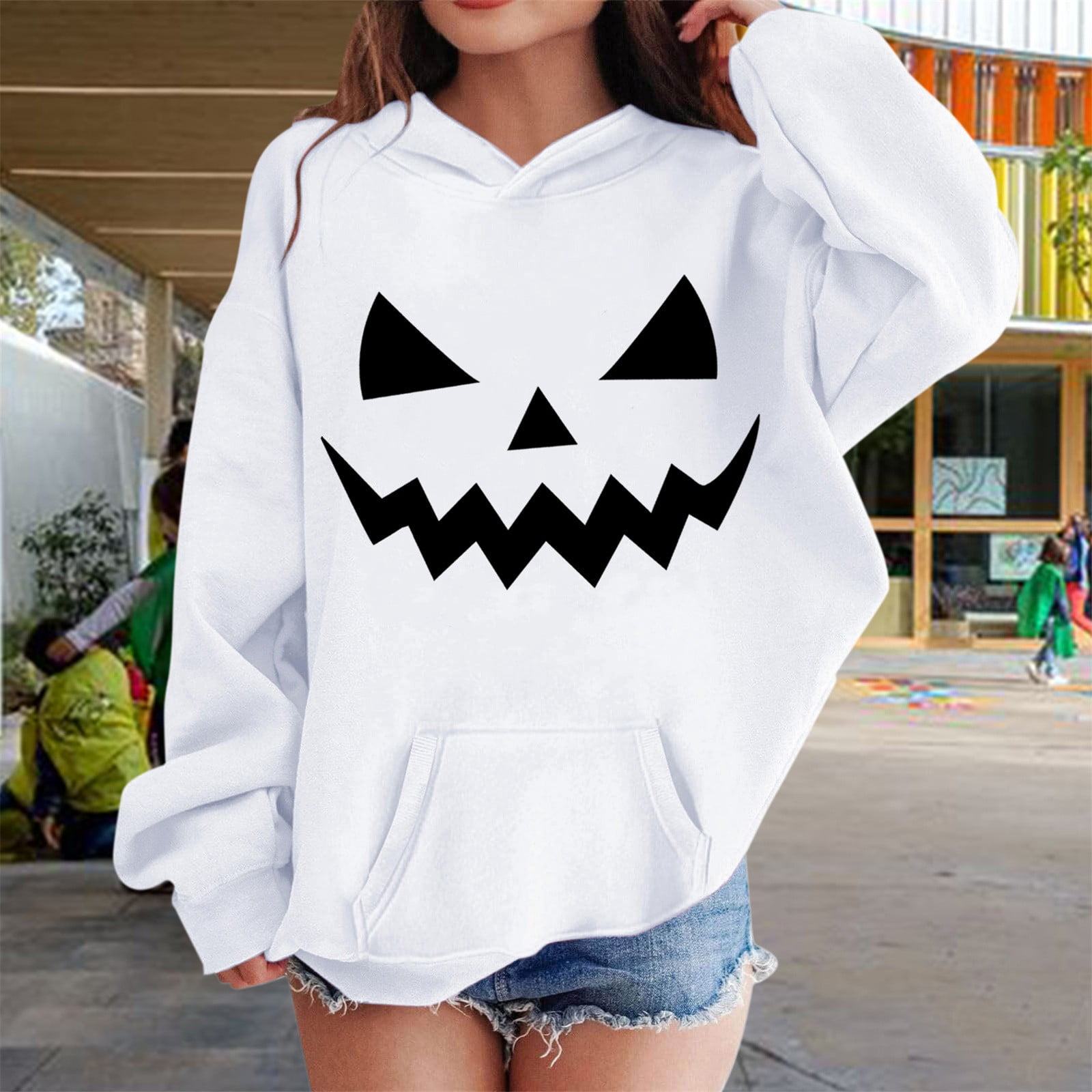 EnJoCho Pumpkin Hoodie Oversized Cotton Pullover for Teen Girls