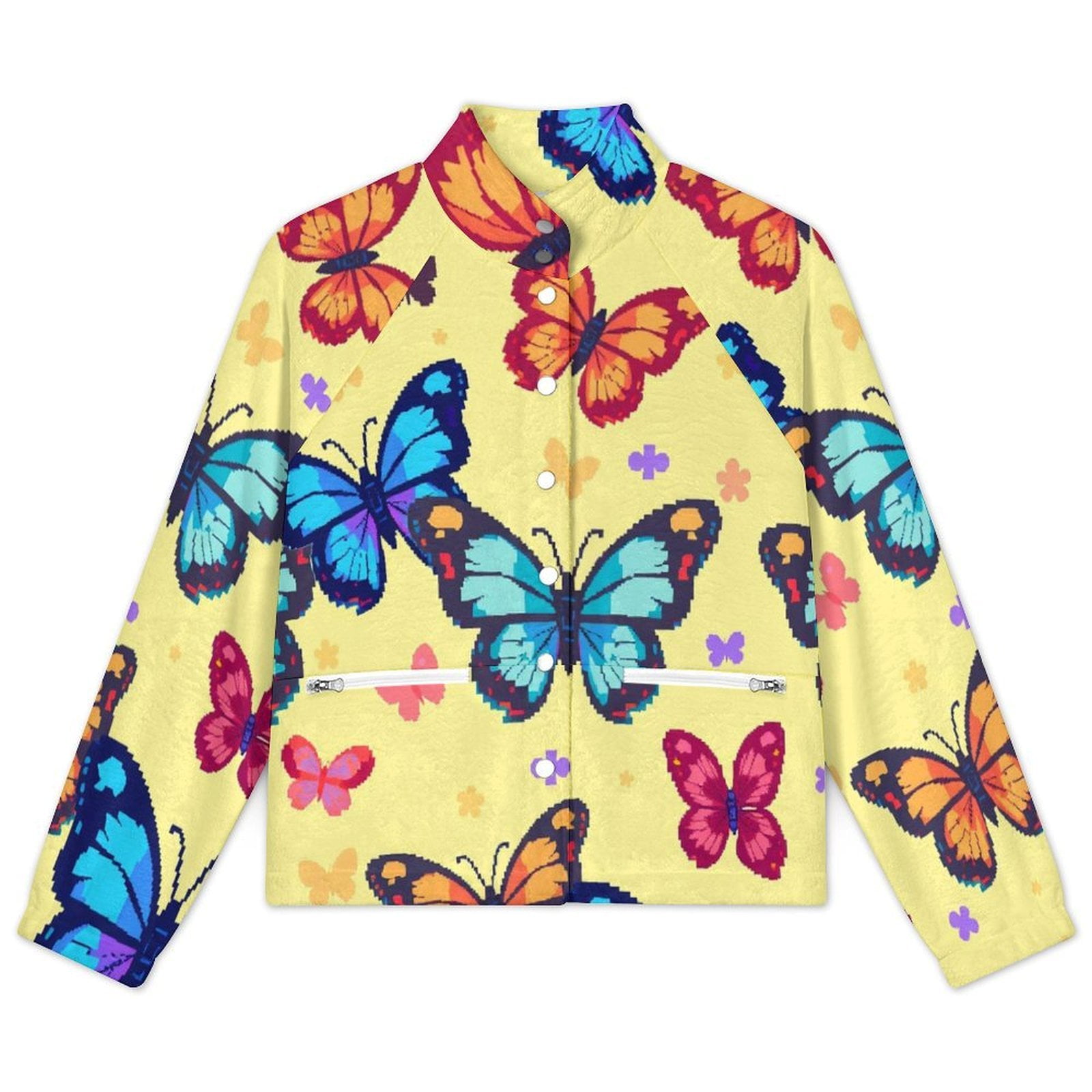 Enchanting Butterfly Fall Winter Women Jacket Stand Collar Thick Plush