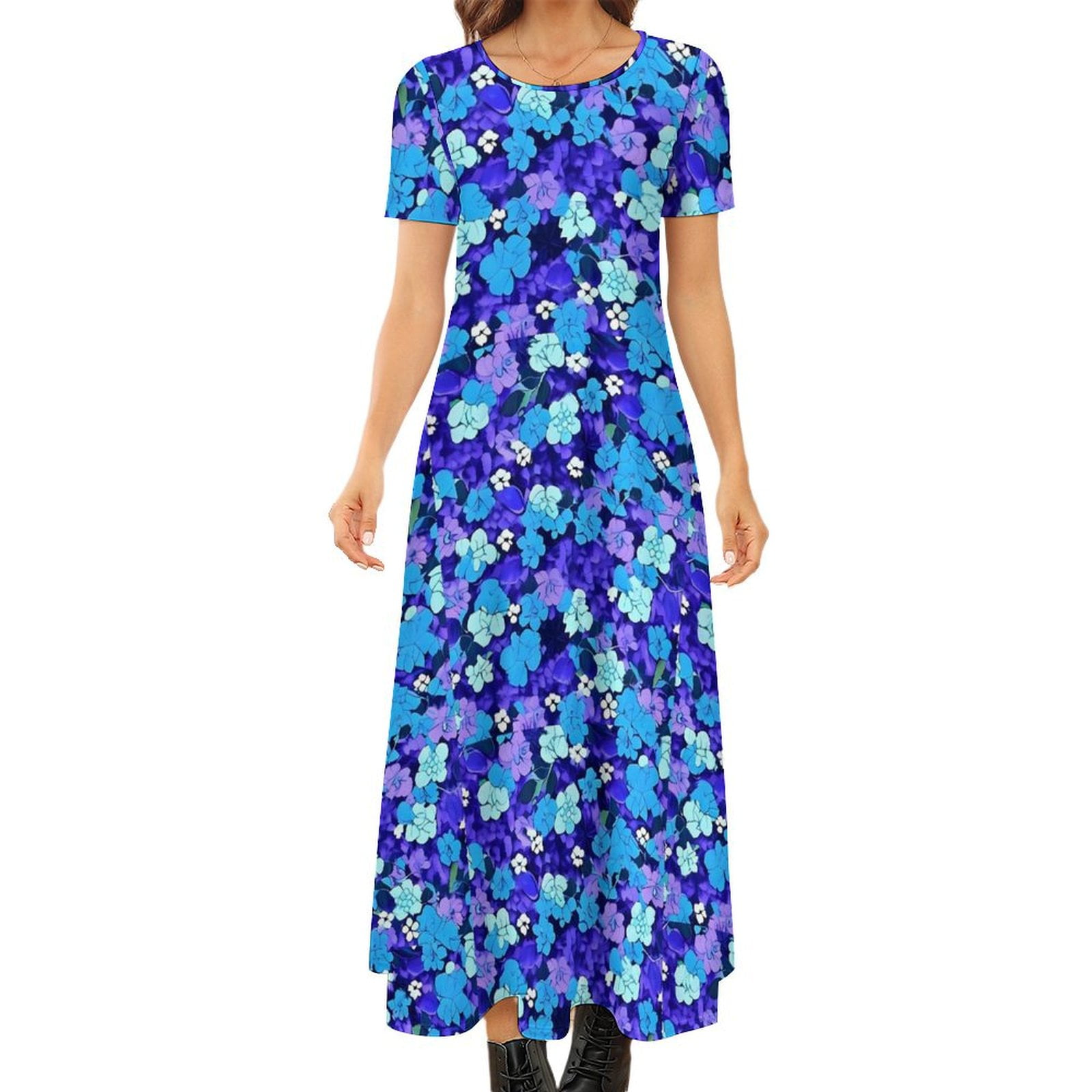 Falling Blue Flower Dress Sakura Cherry Blossom Maxi Dress Streetwear