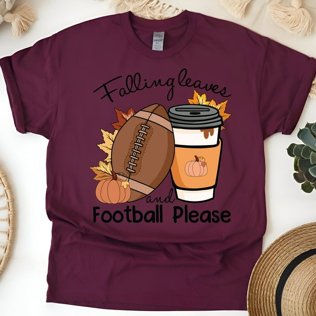 Falling Leaves and Football Please Shirt Fall Pumpkin Coffee Autumn