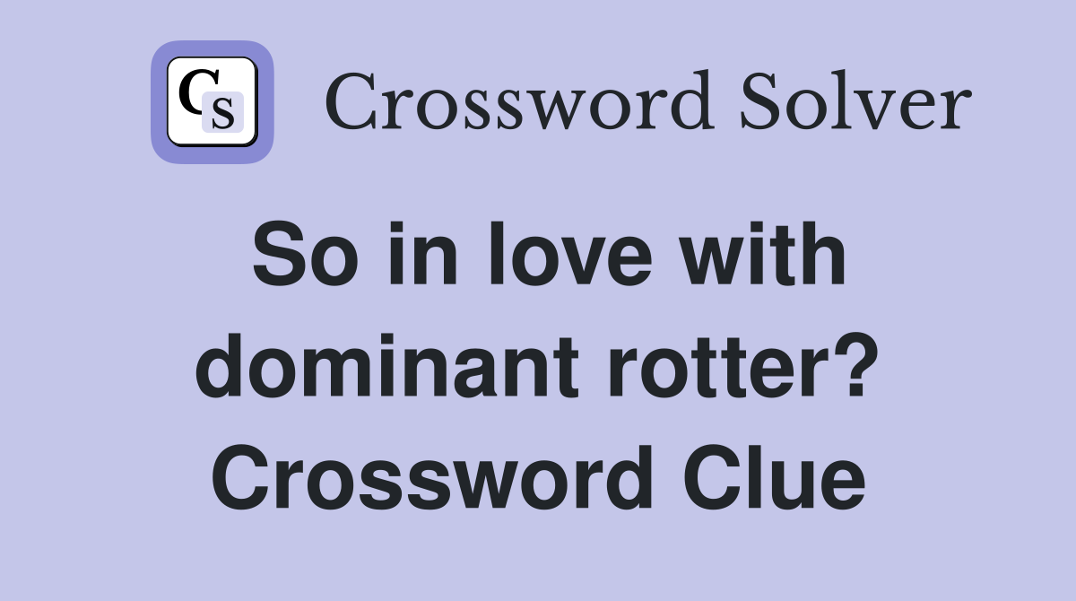 So in love with dominant rotter? Crossword Clue Answers Crossword