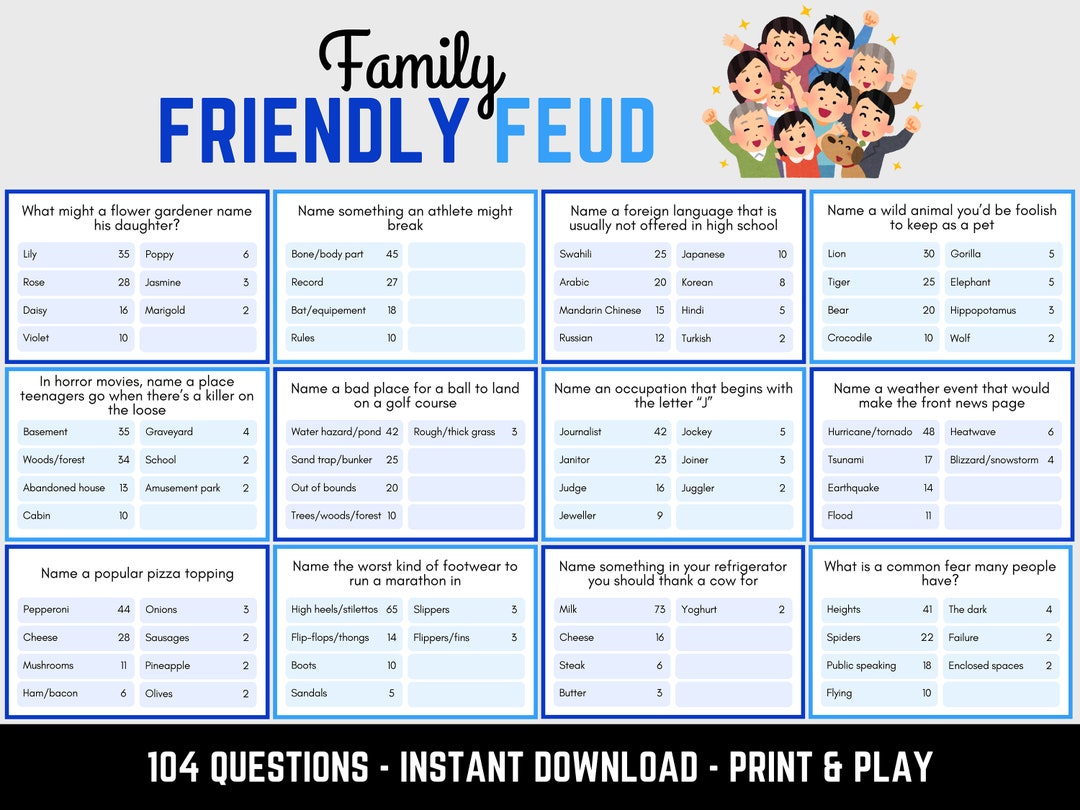 Family Friendly Feud Printable Party Game Downloadable Family Feud