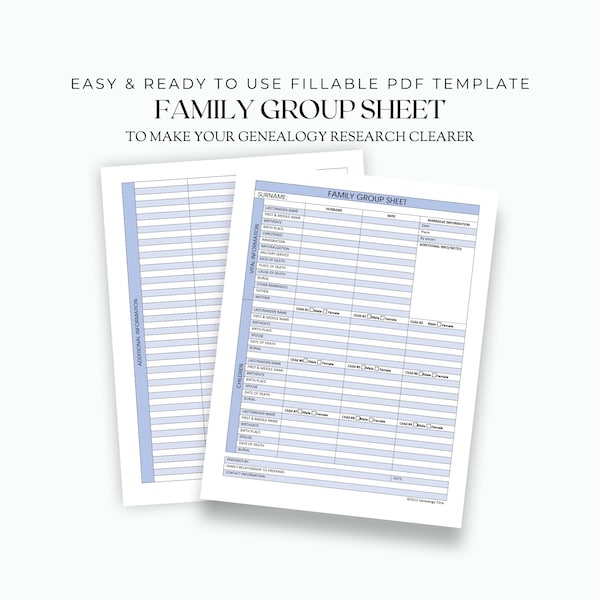 Family Group Sheet Digital Template Downloadable Printable PDF