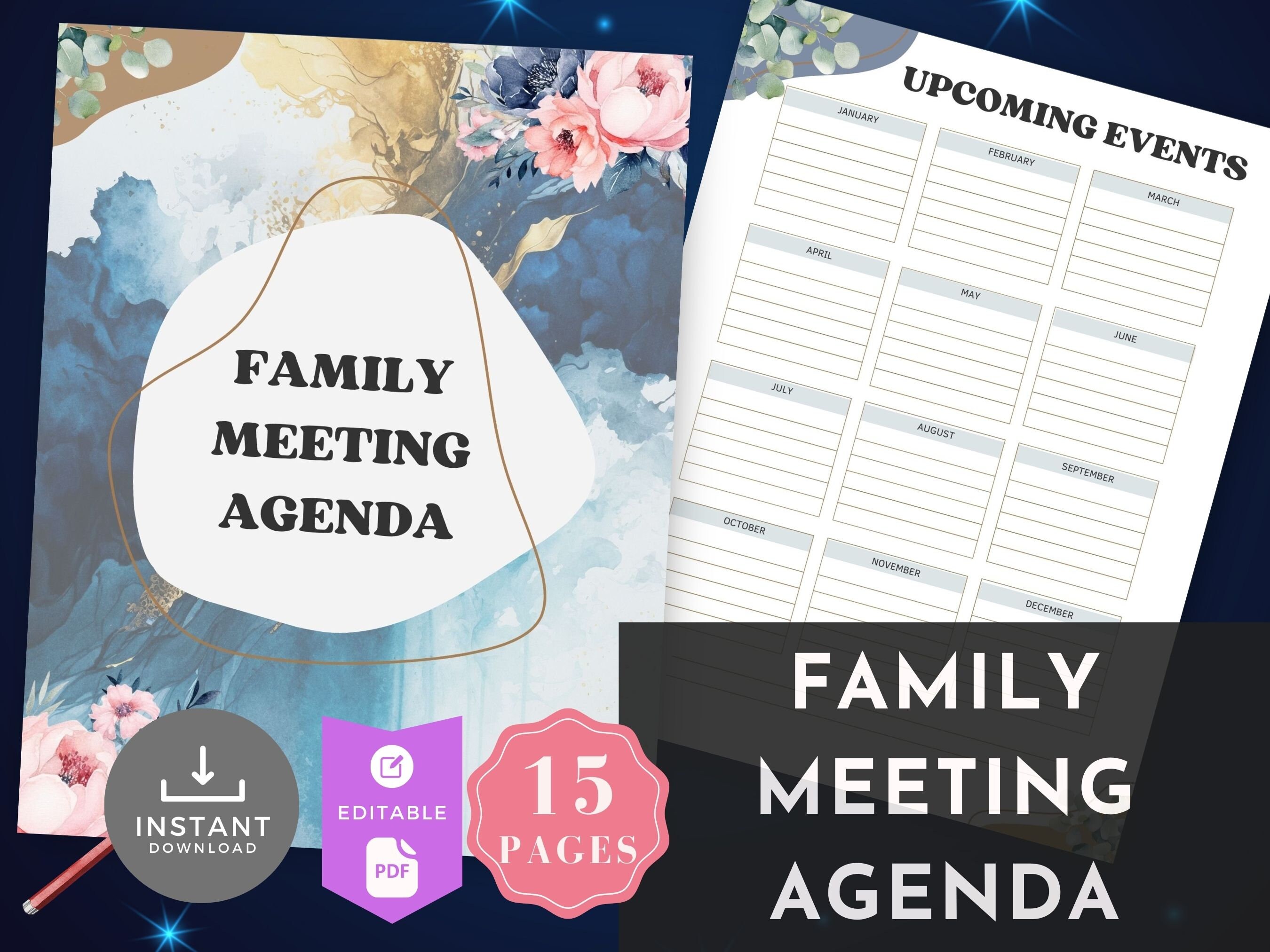 Family Meeting Agenda Template Family Meeting Guide Navy Gold Family