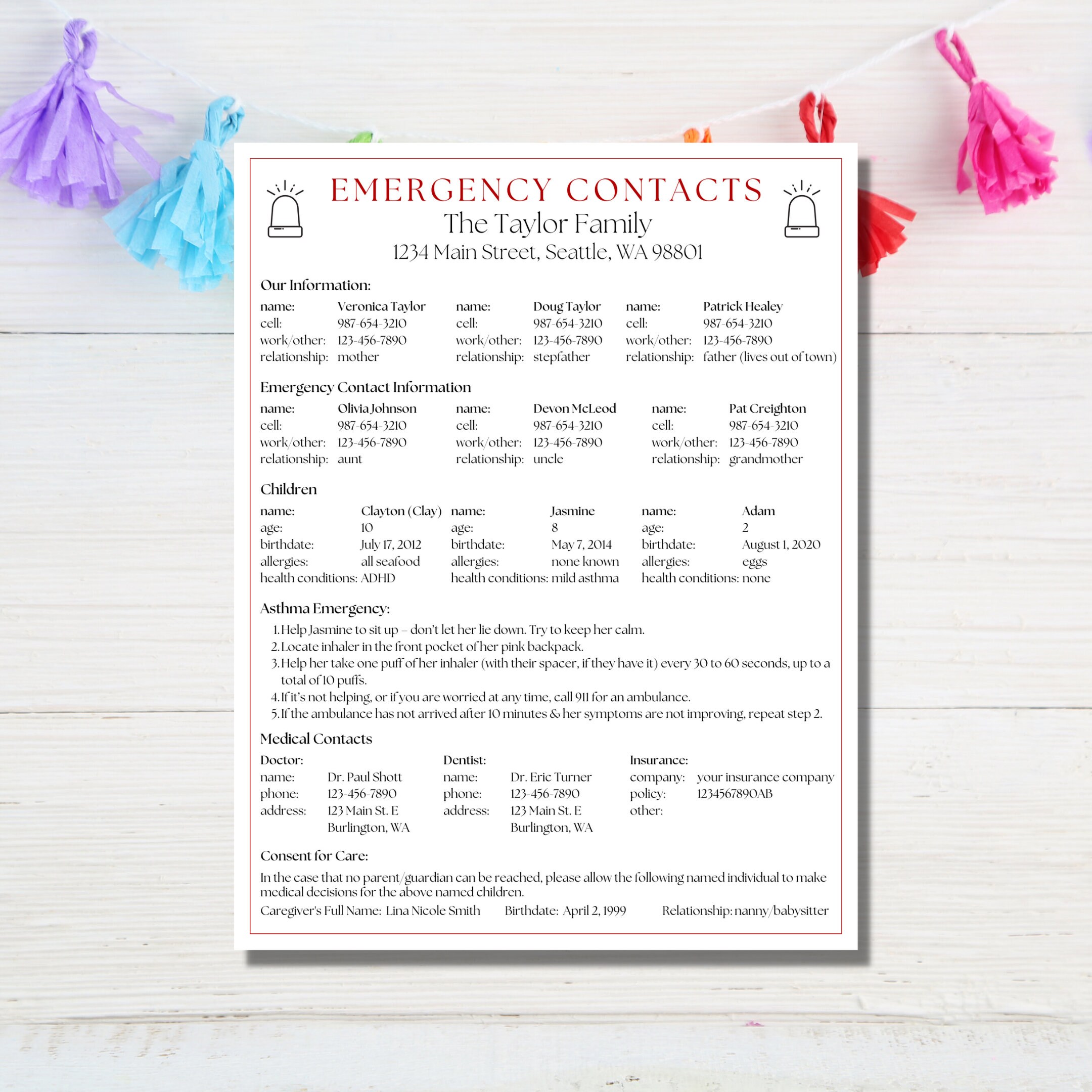 Editable Childcare Notes Printable Babysitter Important Info Page