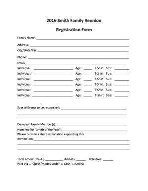 Fillable Online 2016 Smith Family Reunion Registration Form Fax Email