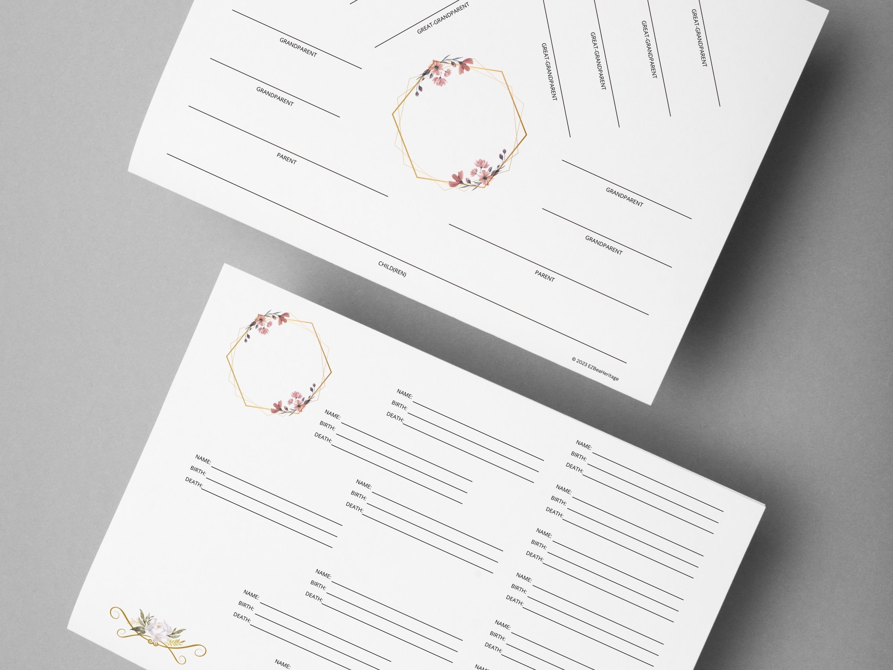 Family Tree Template for 5 Generations Wildflower Genealogy Etsy