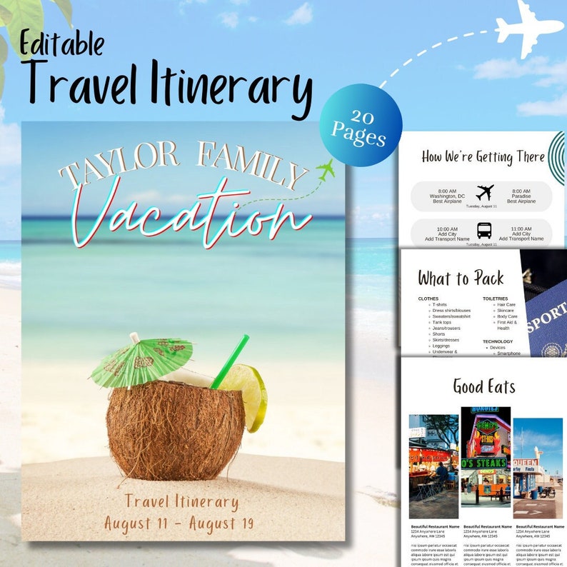 Editable Family Vacation Itinerary Template 20 Pages Colorful