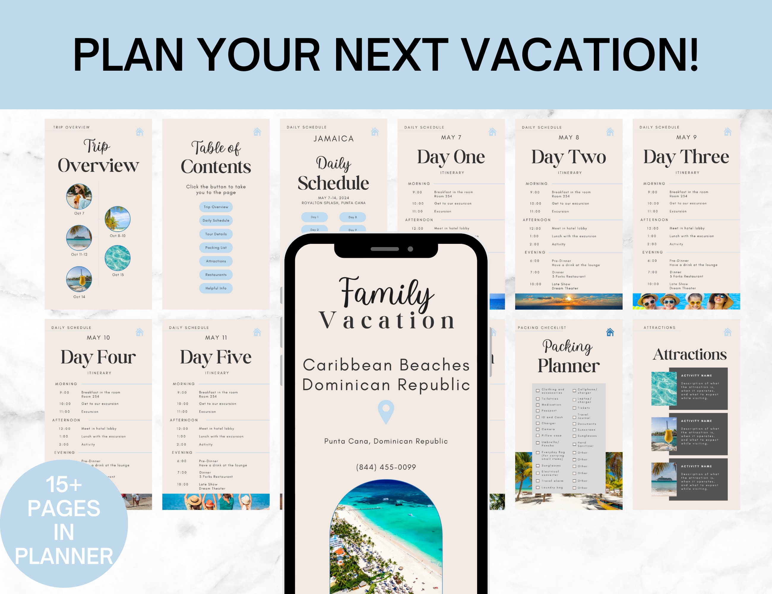 Family Vacation Planner Digital Travel Itinerary Template Etsy