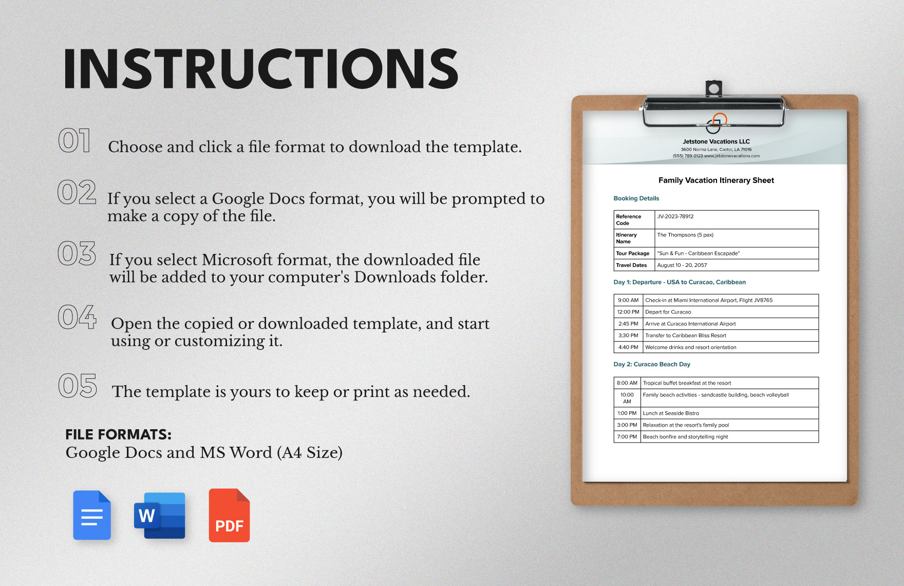 Family Vacation Itinerary Template in Word PDF Google Docs Download