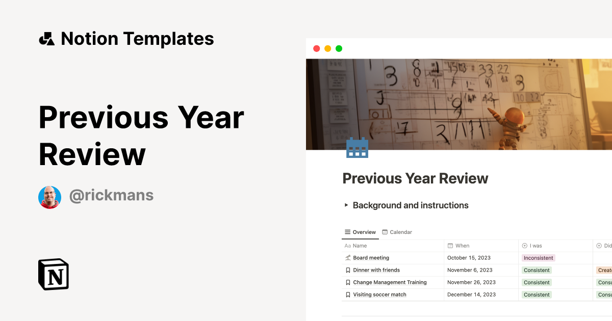 Previous Year Review Template by Rick Mans Notion Marketplace