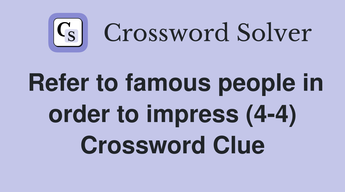 Refer to famous people in order to impress (4 4) Crossword Clue