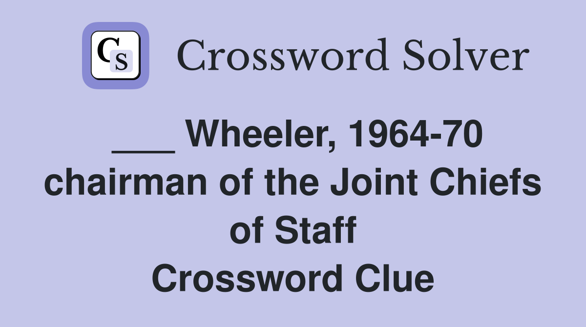 Wheeler 1964 70 chairman of the Joint Chiefs of Staff Crossword Clue