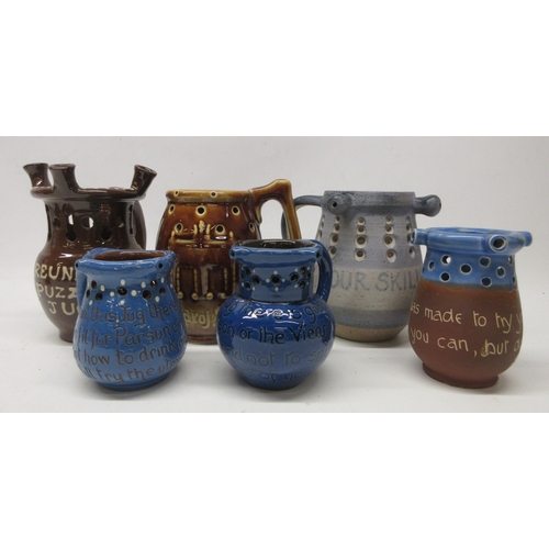 Collection of novelty puzzle jugs comprising Talavera pottery trick