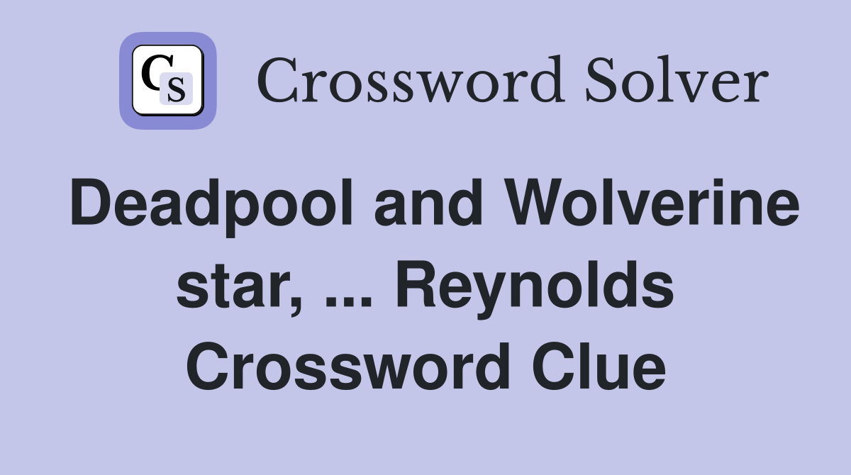 Deadpool and Wolverine star Reynolds Crossword Clue Answers
