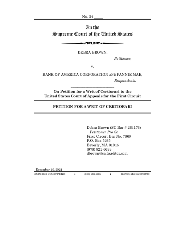 (PDF) Supreme Court of United States Debra Brown v Bank of America