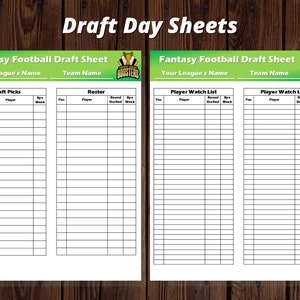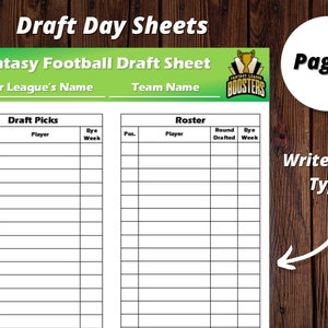 Fantasy Football Draft Day Sheet Template Etsy