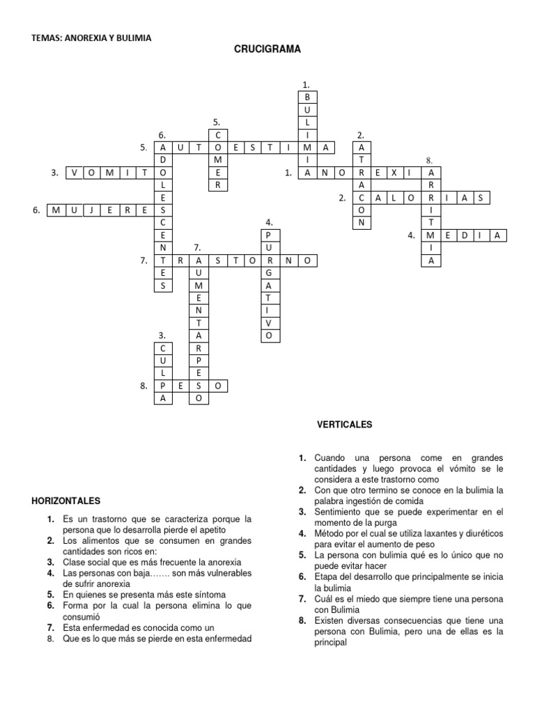 crusigrama contestado PDF Bulimia nerviosa Anorexia nerviosa