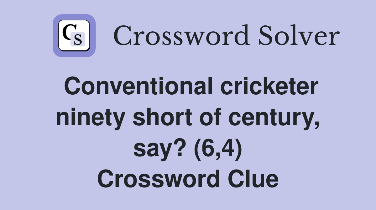 Conventional cricketer ninety short of century say? (6 4) Crossword