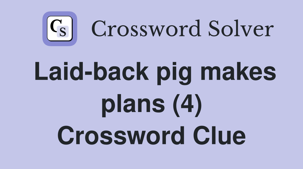Laid back pig makes plans (4) Crossword Clue Answers Crossword Solver