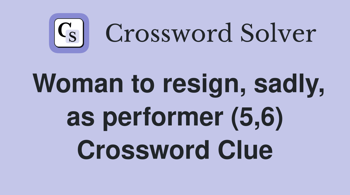 Woman to resign sadly as performer (5 6) Crossword Clue Answers