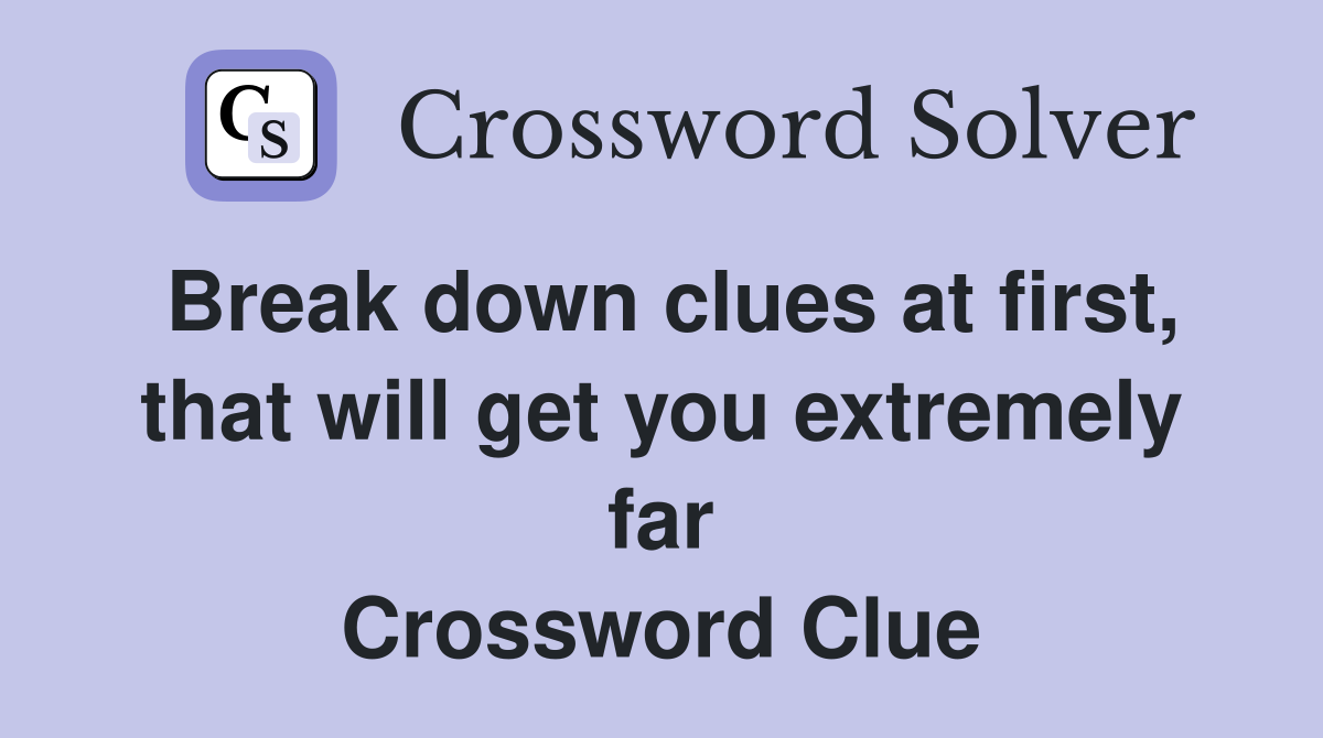 Break down clues at first that will get you extremely far Crossword